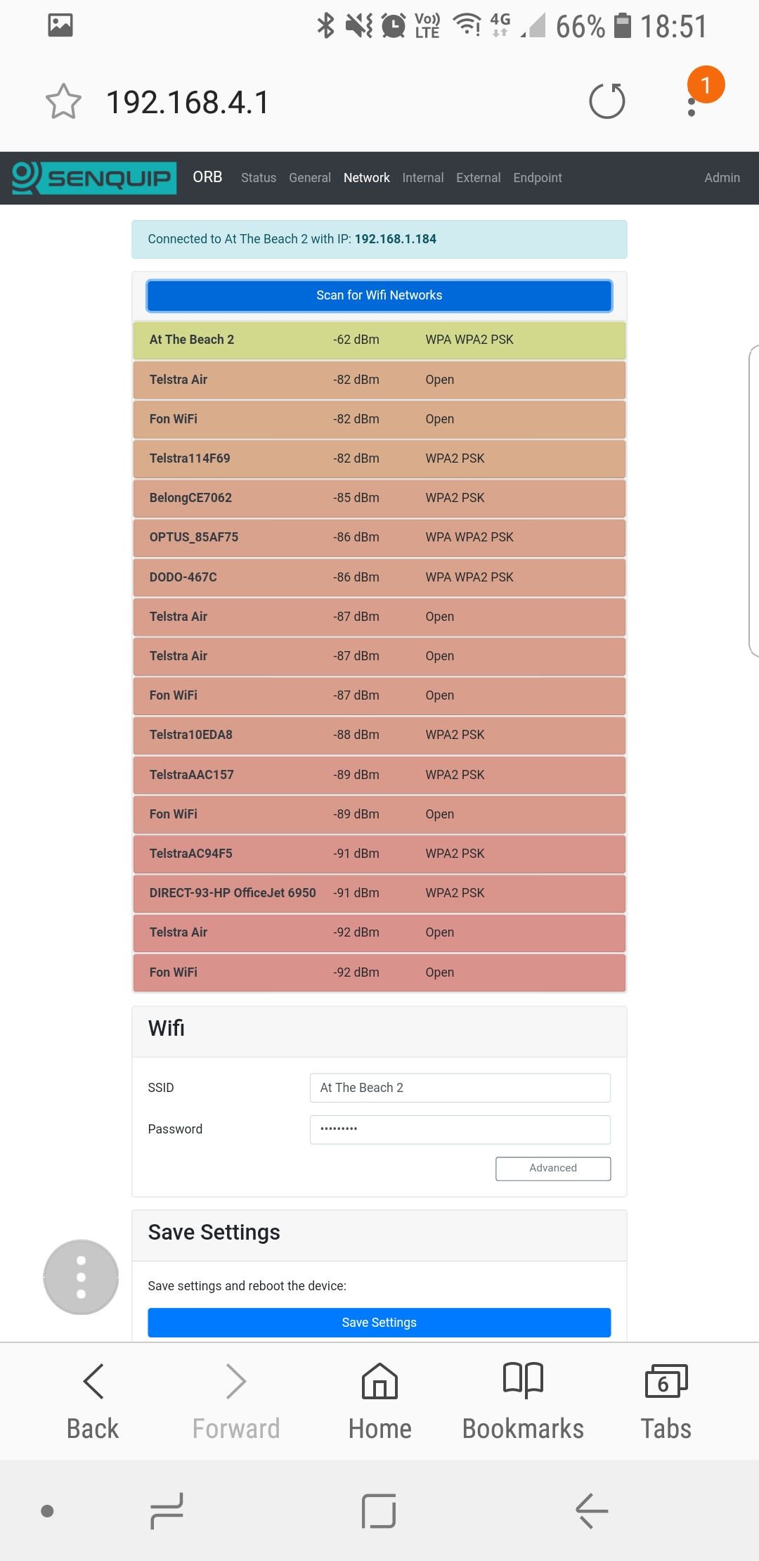 Once in setup mode, use the Network page to connect the Senquip ORB-X1 to a Wi-Fi network.